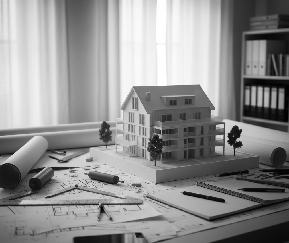 Ausführungsplanung & Detailplanung: Erstellung präziser und normgerechter Ausführungs- und Konstruktionszeichnungen als Grundlage für die Ausschreibung und fehlerfreie Bauausführung.