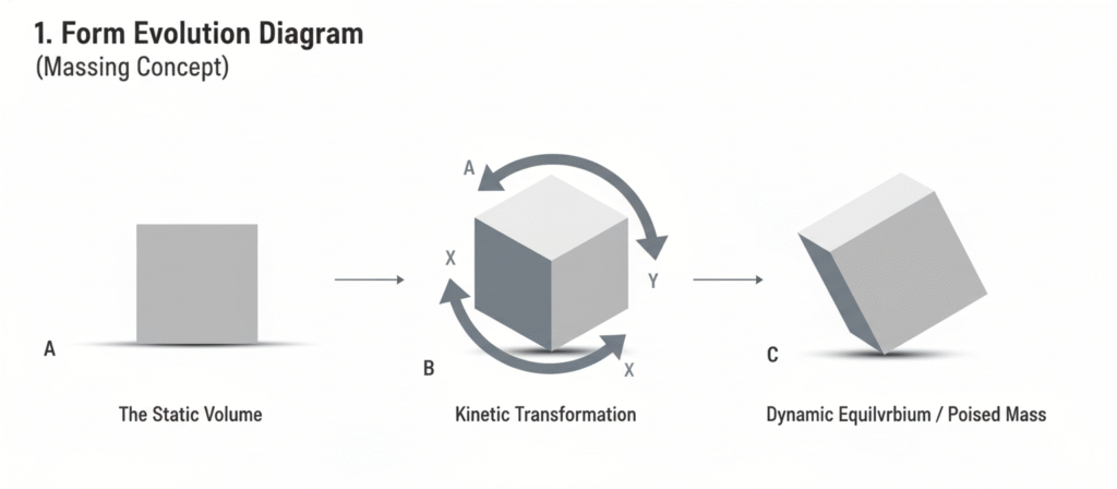 Der konzeptionelle Entwurf für das ASEL Corporate Building präsentiert eine architektonische Skulptur, die die dynamische Bewegung und Innovationskraft des Unternehmens widerspiegelt. Die einzigartige kubische Form, durchbrochen von einer dramatischen Fuge, erzeugt eine illusionäre Dynamik. Die perforierte Fassade und das innovative geometrische Konzept maximieren den Tageslichteinfall und schaffen eine zukunftsweisende Arbeitsumgebung, die Kreativität und kollaboratives Arbeiten fördert.